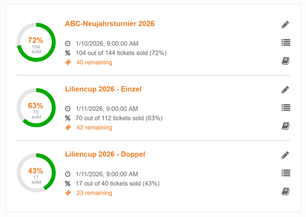 Unser beliebtes ABC-Neujahrsturnier für Senioren findet am Samstag, 10. Januar 2026, statt. Der Lilien Cup für Kinder und Jugendliche am Sonntag, 11. Januar 2026. Ihr könnt euch ab sofort dafür anmelden.